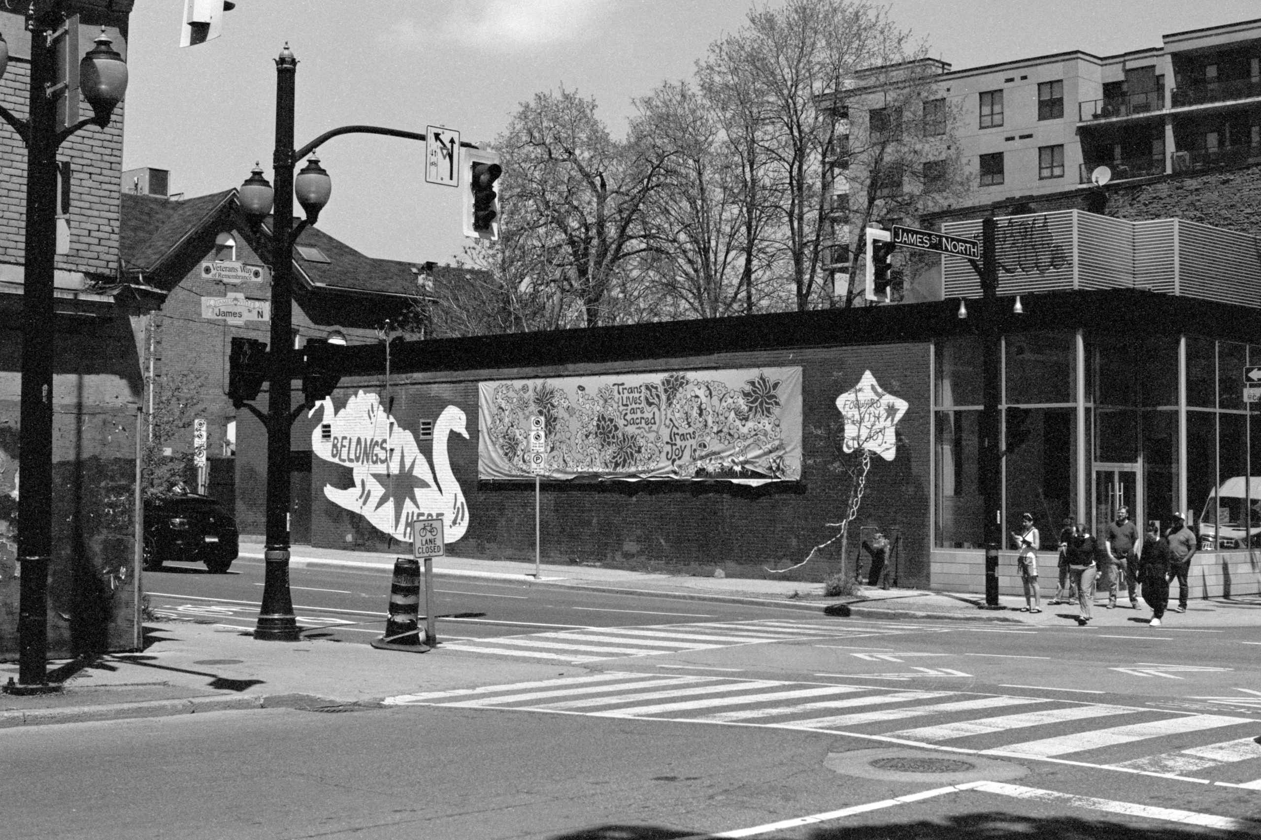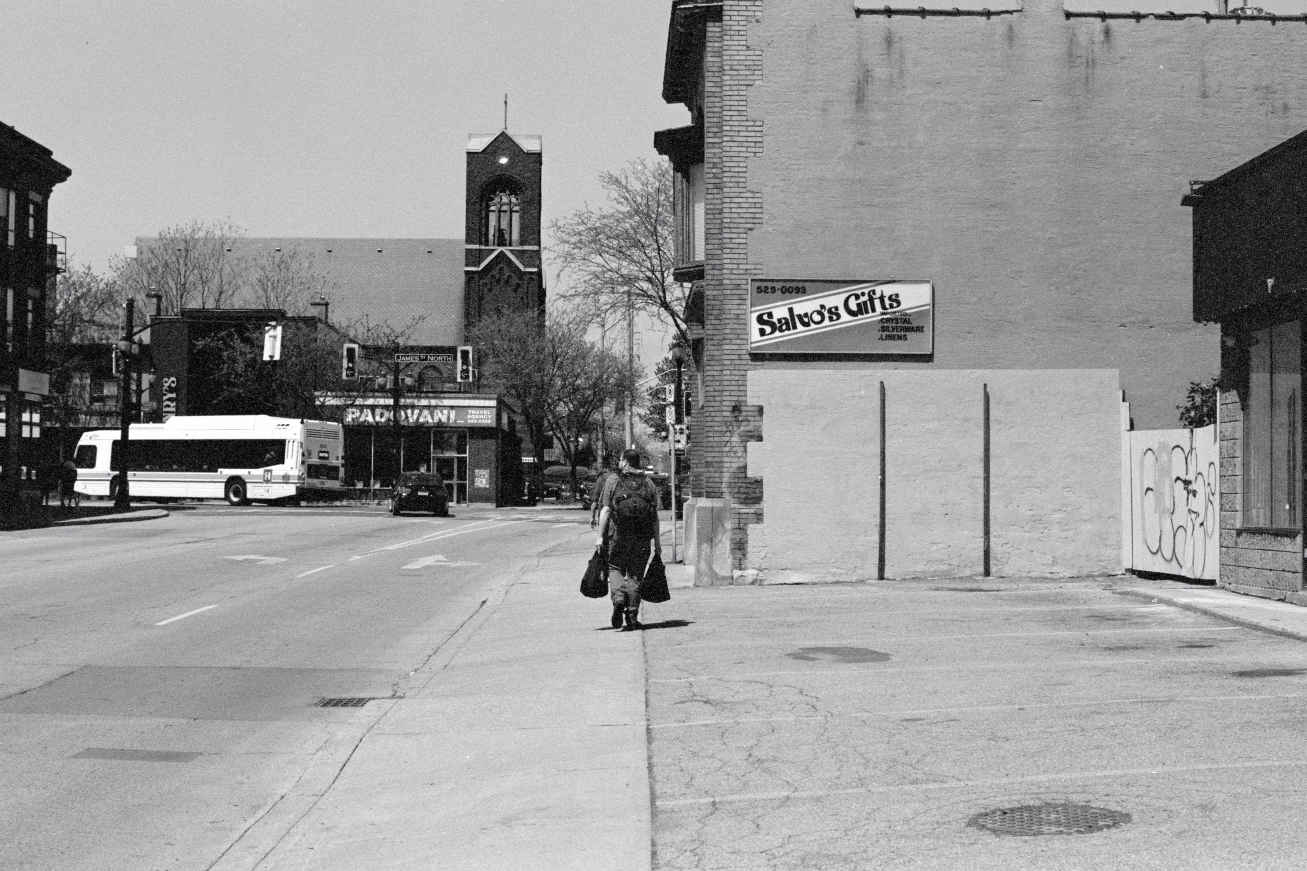 With that morning’s photographic misstep in mind, when I loaded a new roll on that roasty-toasty corner, I double- triple-checked that the camera was properly set for the film speed and that it was on ‘1x’ (normal). Having run out of Ottawa Street, we boarded the Barton bus back to the downtown.