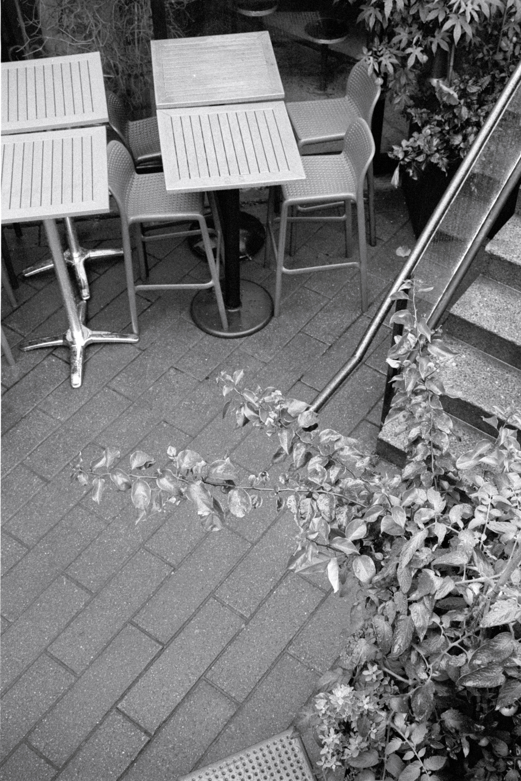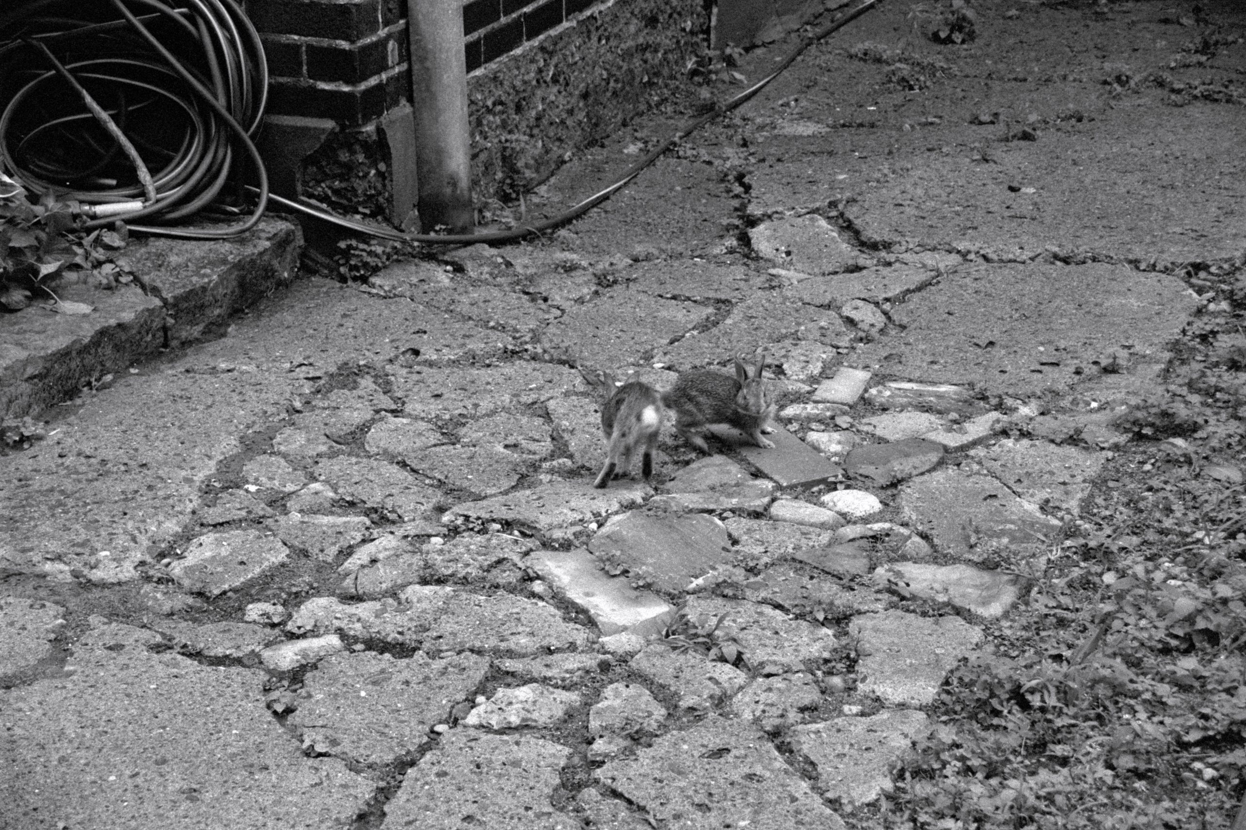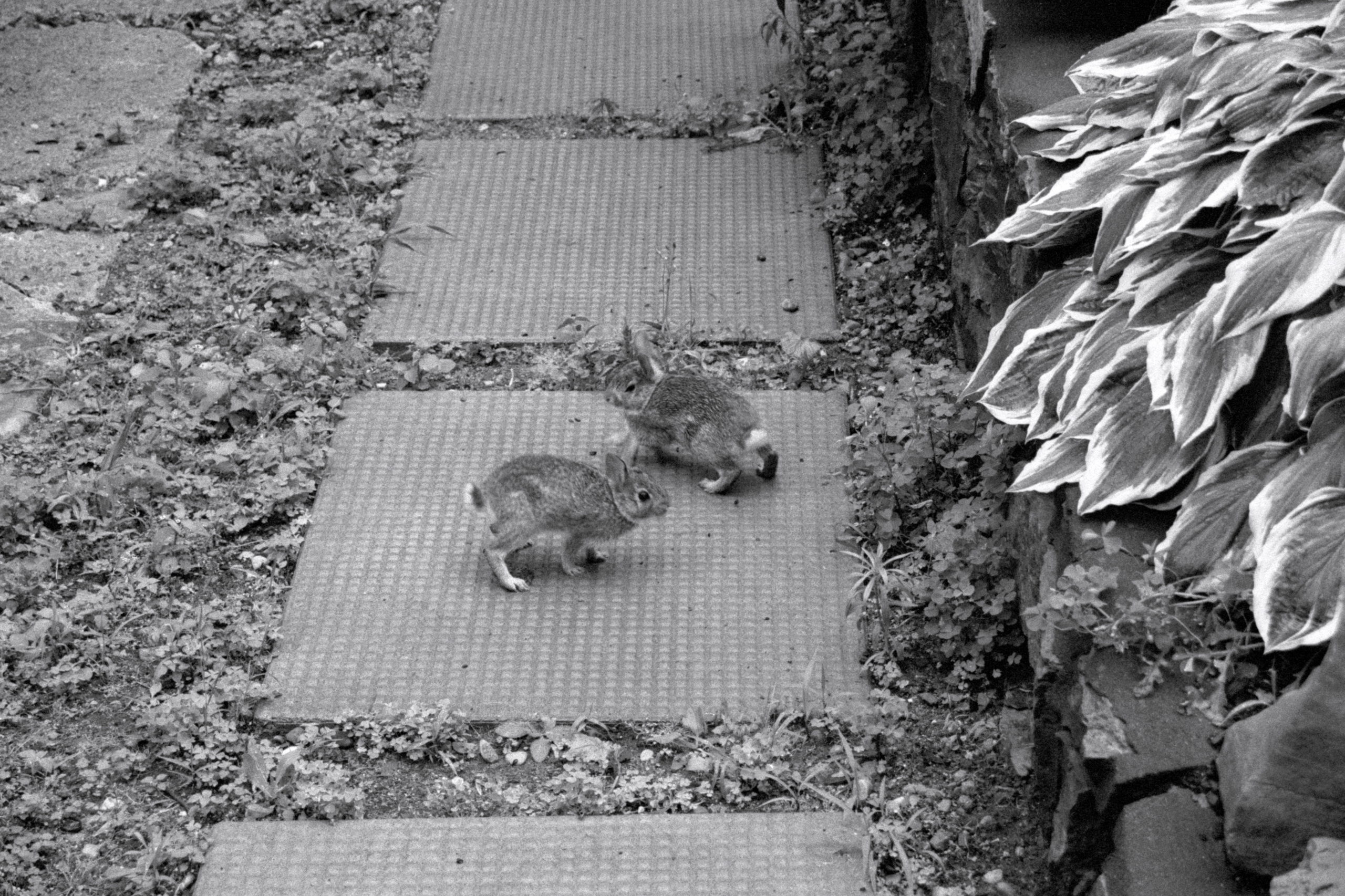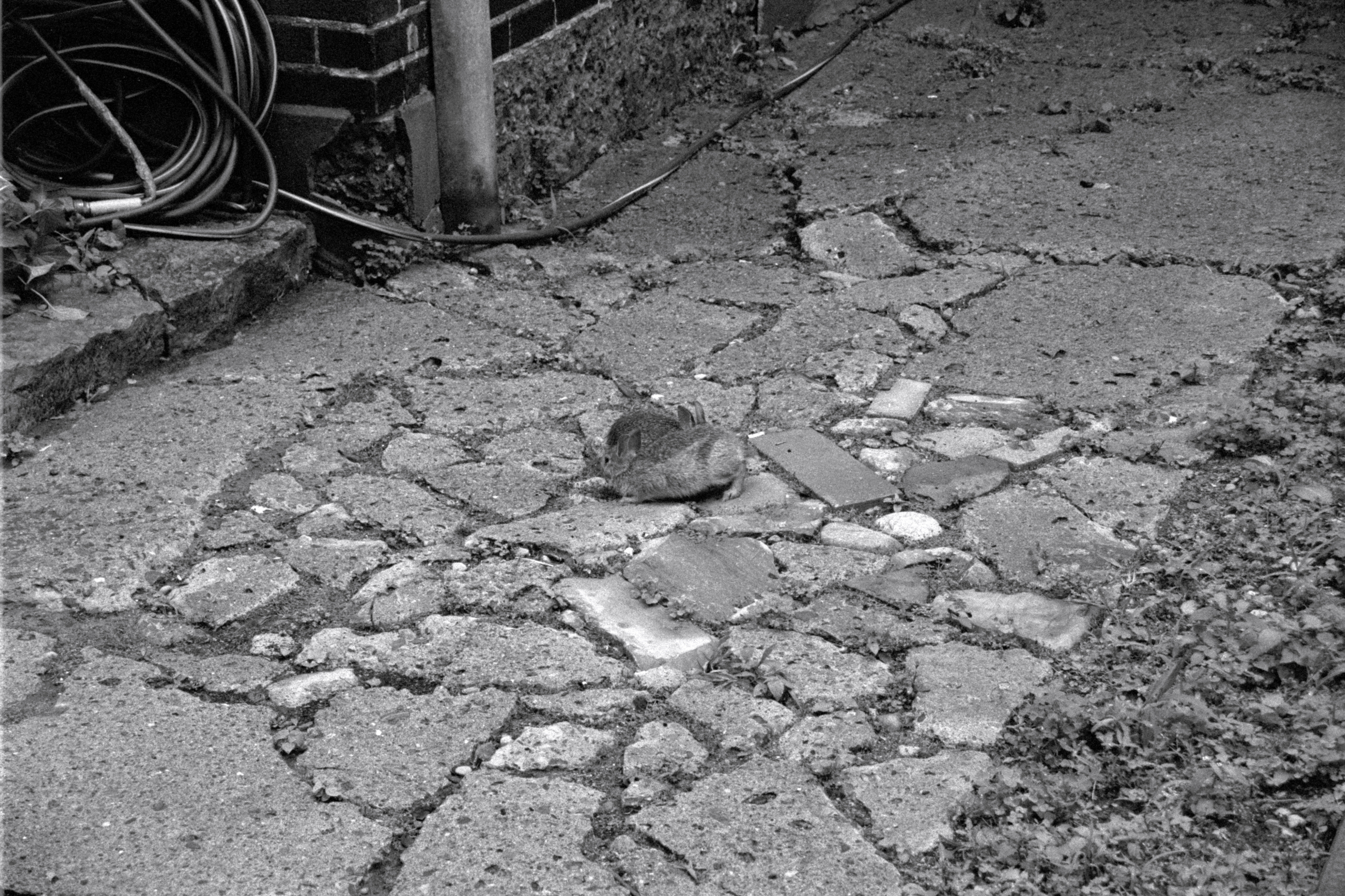 Heavy overcast and growing humidity aren’t the most inspiring of conditions for me, so most of the roll was “making photos for the sake of making photos”. That is, until we came across two young bunnies between two apartments on Lisgar Street. At first they were just crouched on the paving stones, but almost immediately decided that it was time to do a little roughhousing!