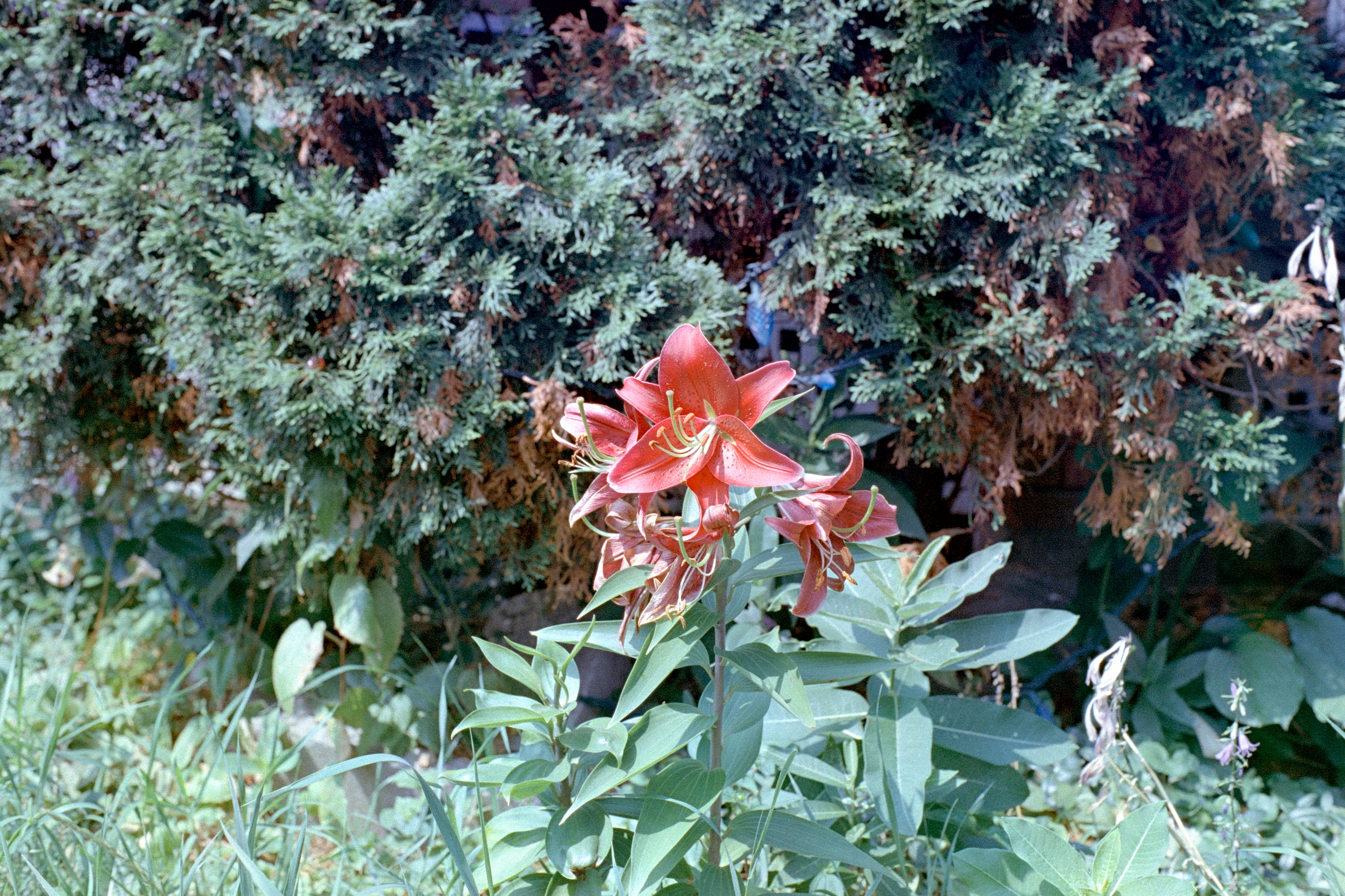 When I pulled the film from the tank, a quick inspection was promising. Gone were the mottled pale peach and deep orange film base, and it looked quite normal. When I came to scan it on the other hand, well, I still ended up with a number of frames green discoluration.