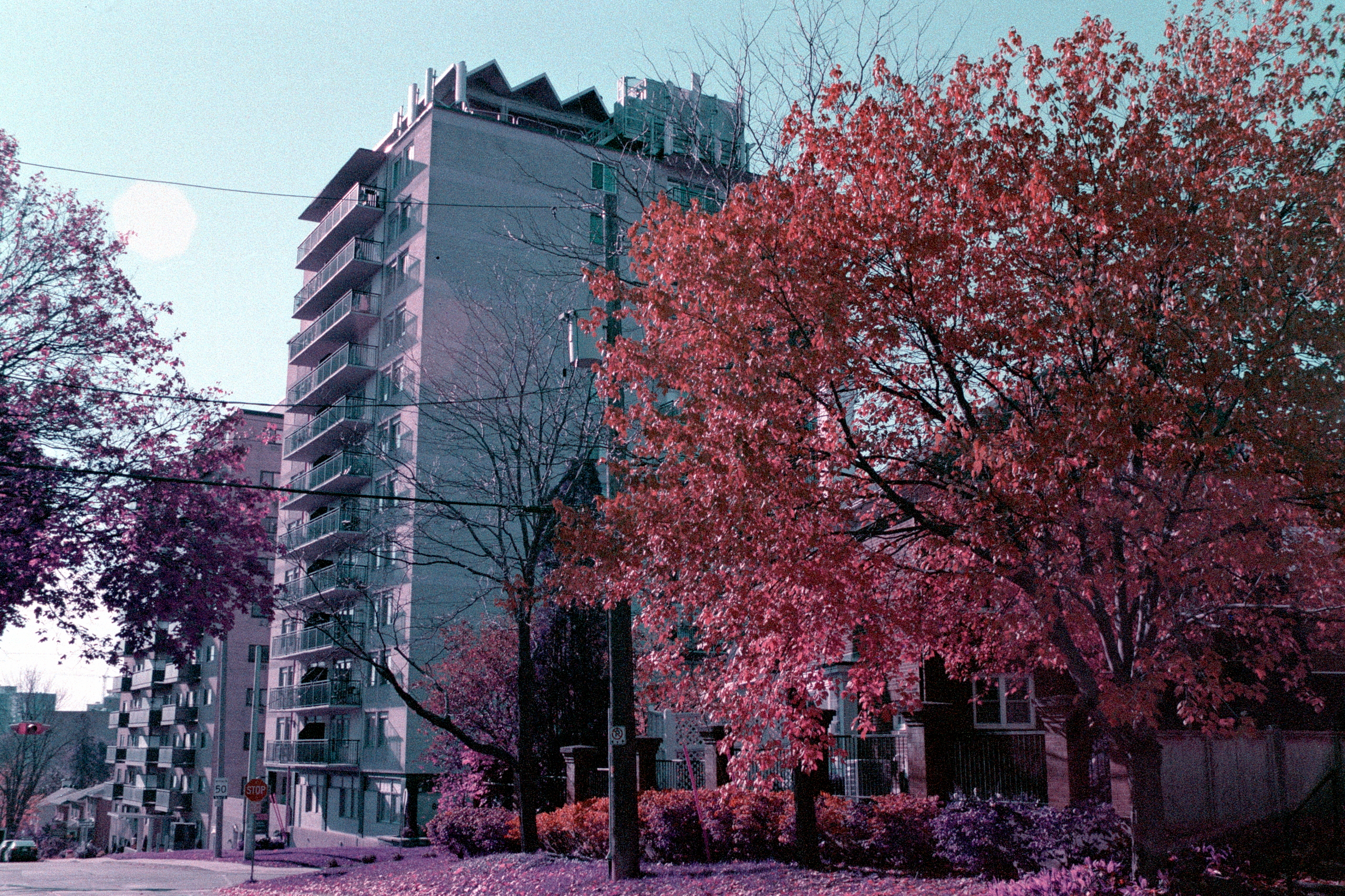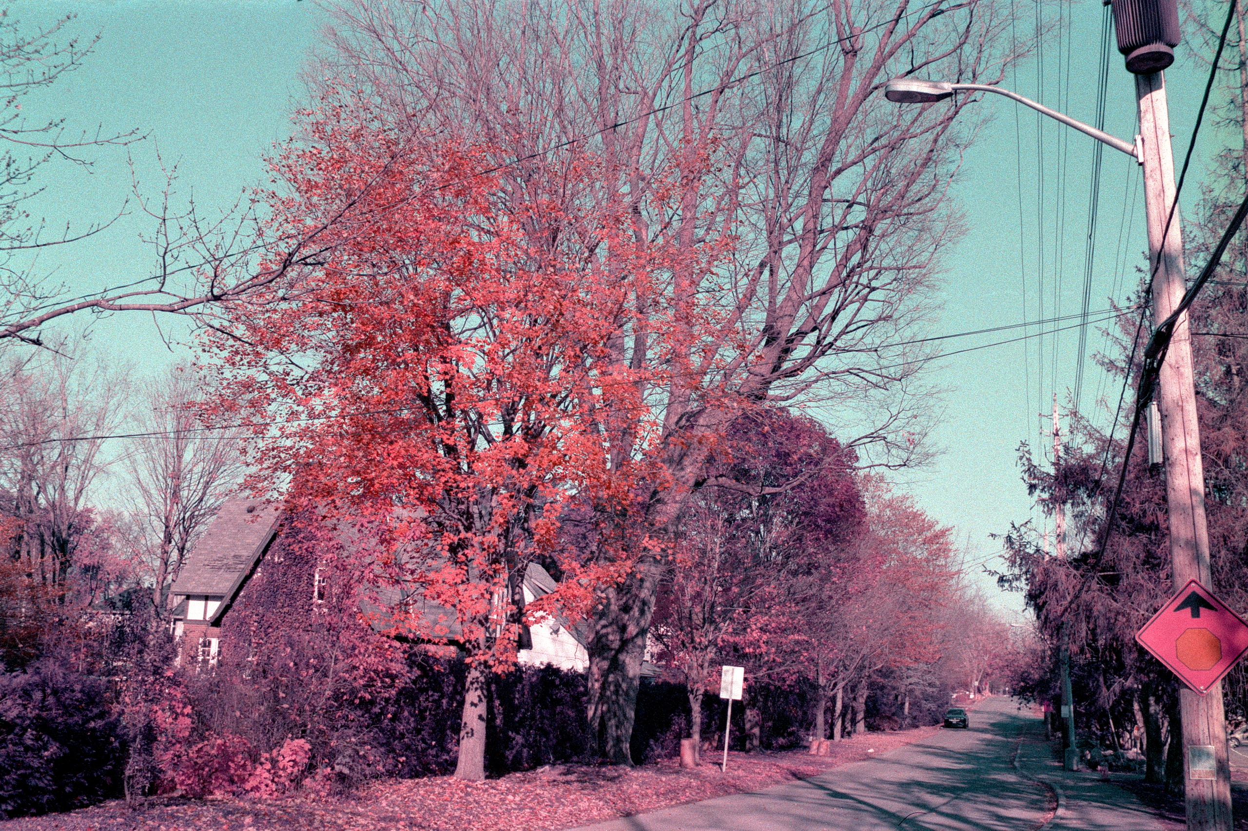 Looking back through my photo archive, it occurred to me that we have one exception for the timing of our little fall tradition. Instead of paying our photographic visit to Rockcliffe in mid-October, in 2021, we did not go until the first week of November. In an attempt to bring a little more colour to the fore, I decided to load a roll of Lomochrome Purple.