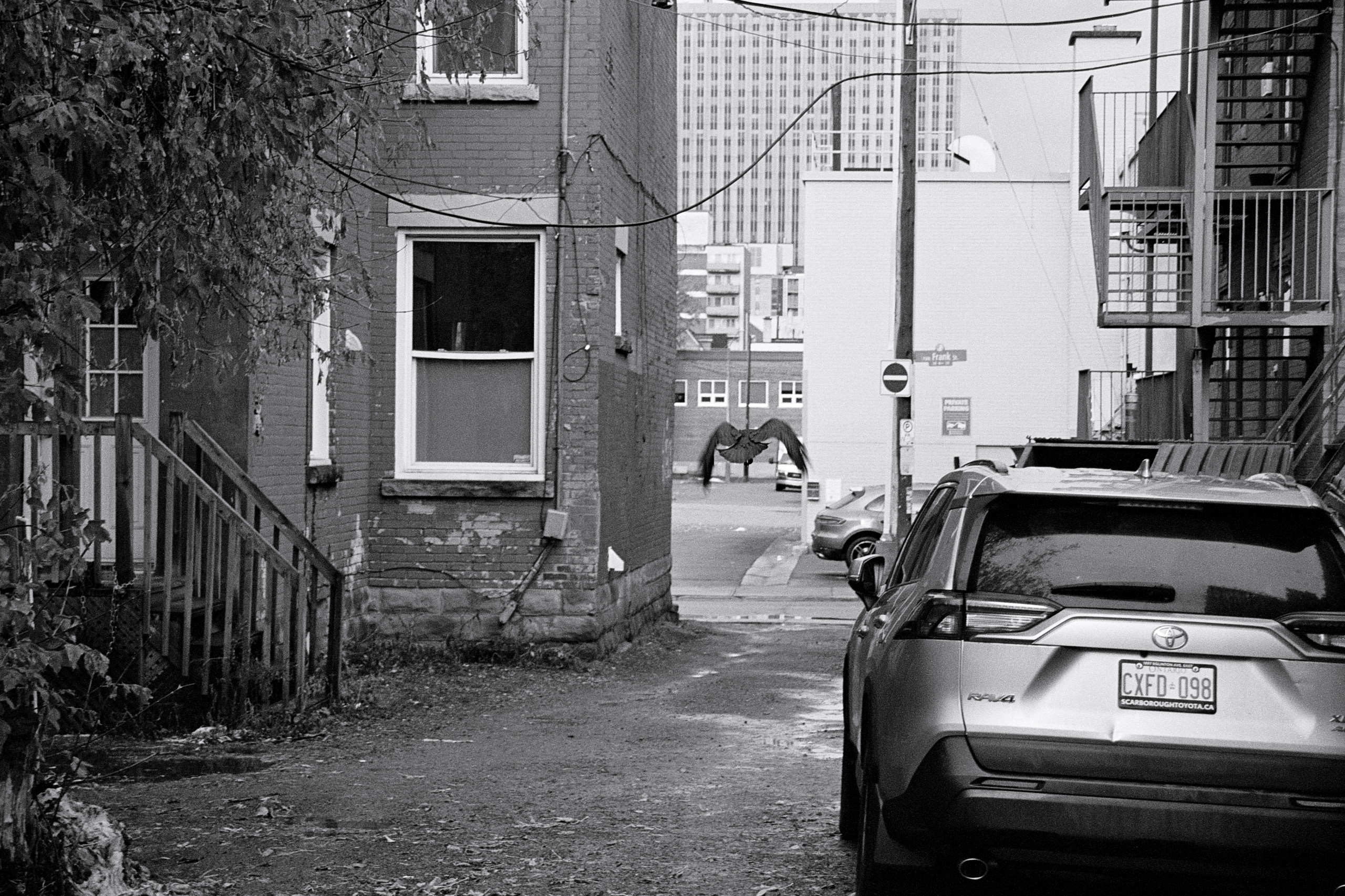 We’ll be walking along, I’ll see a crow with some french fries, pause to compose a photo, and no sooner does that happen, the crow is gone.