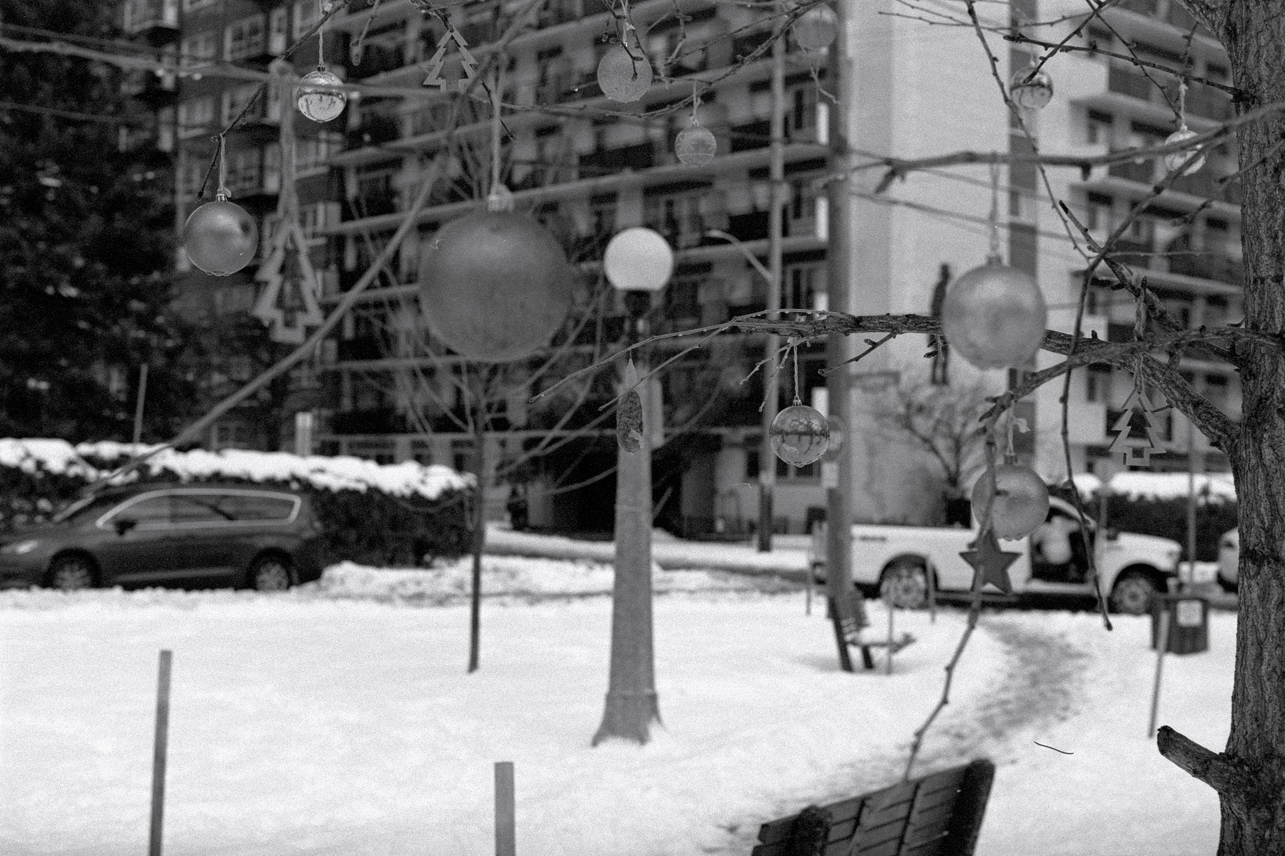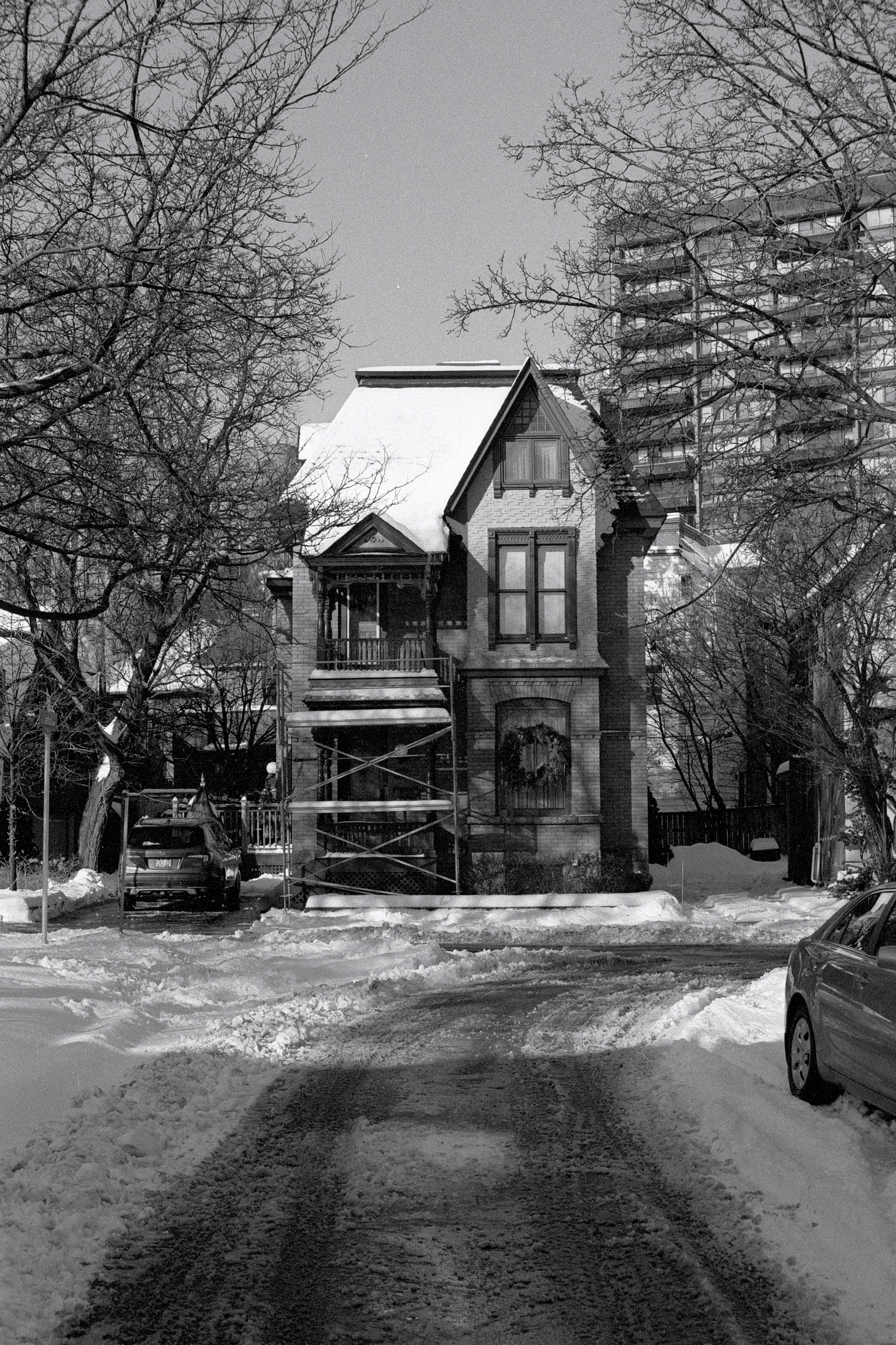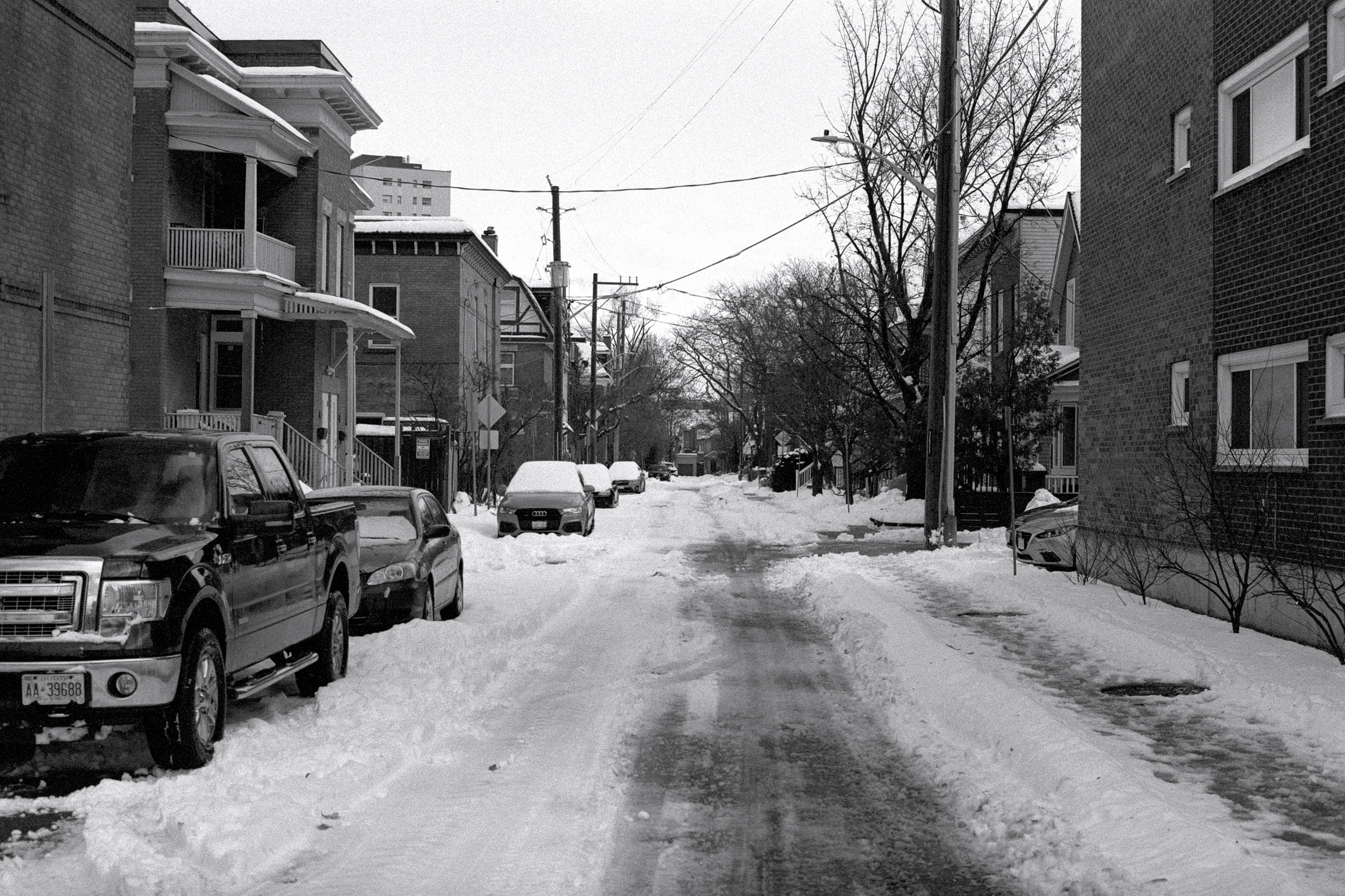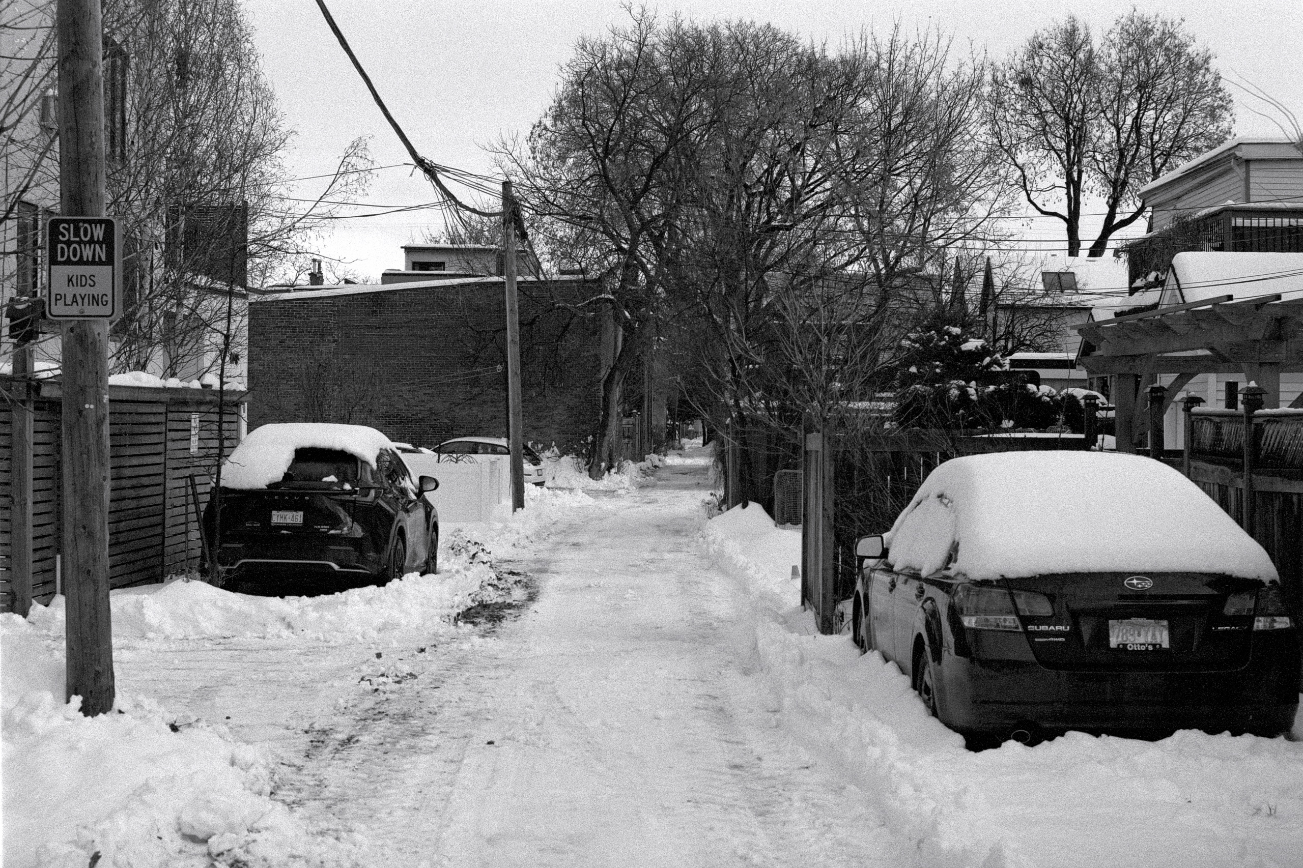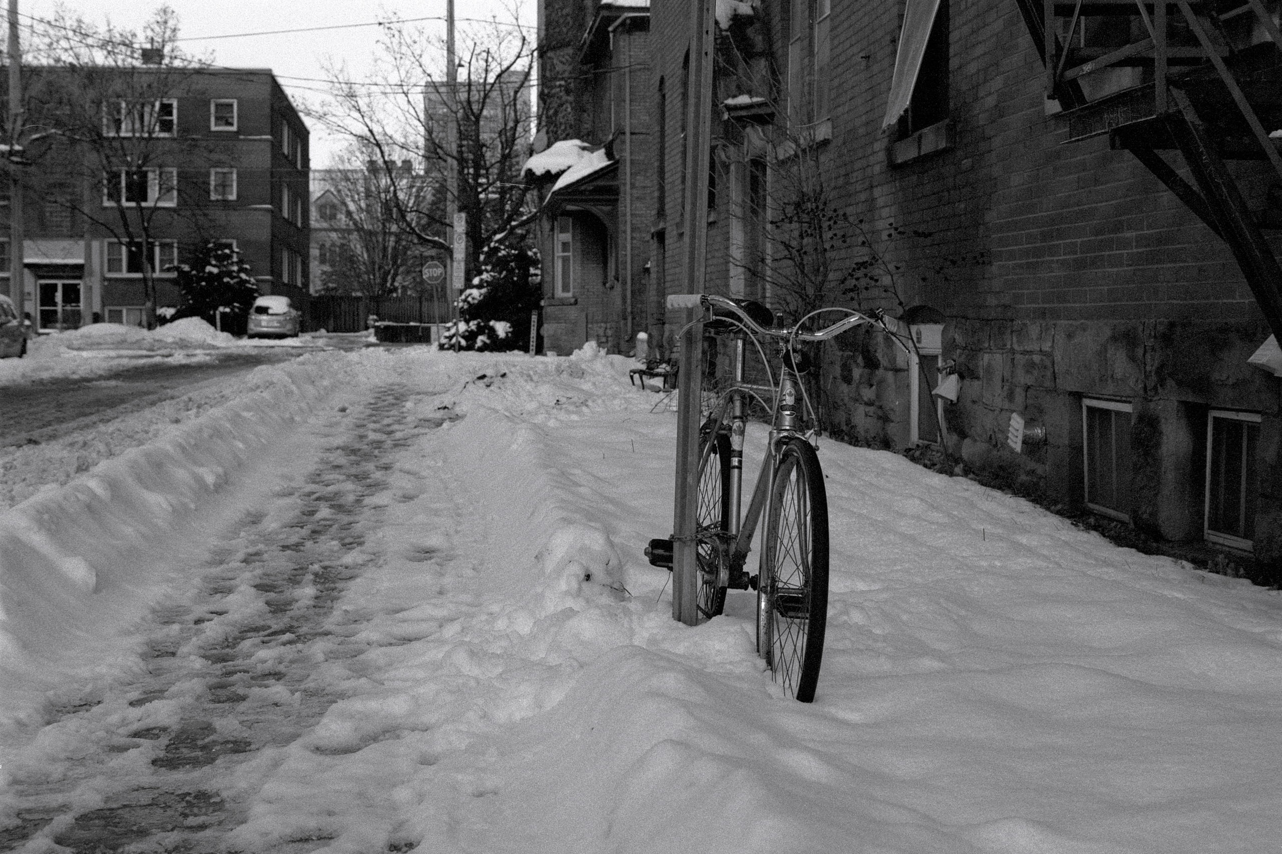 Neither loading a roll into the F80 during the day nor the clear-as-a-bell skies could get me to bring a camera with me after work today while out to pick up our groceries! All I had to do was look at the weather conditions, see that it was -12C (-23C with the wind) and I knew it would be a quick in-and-out.