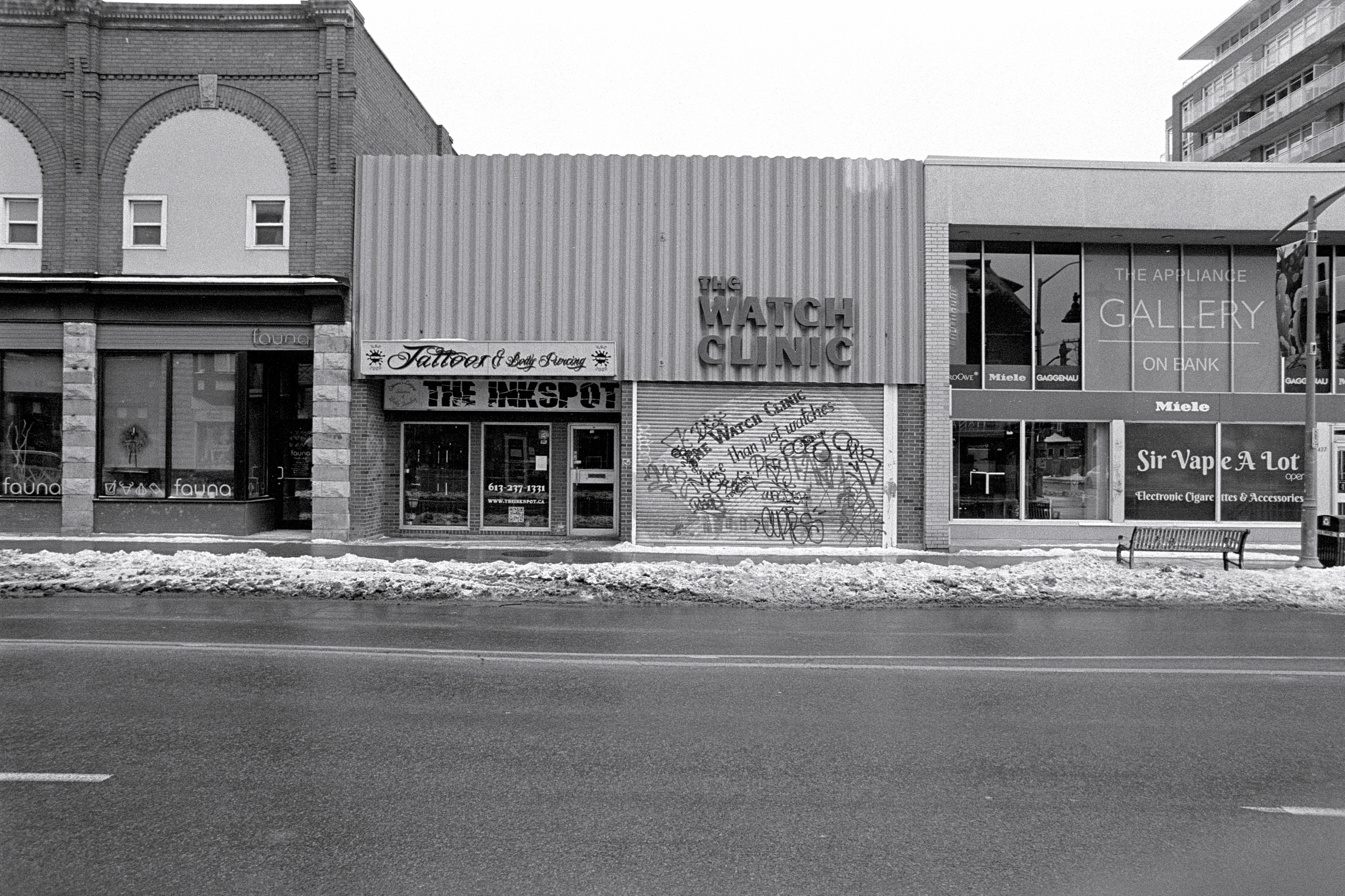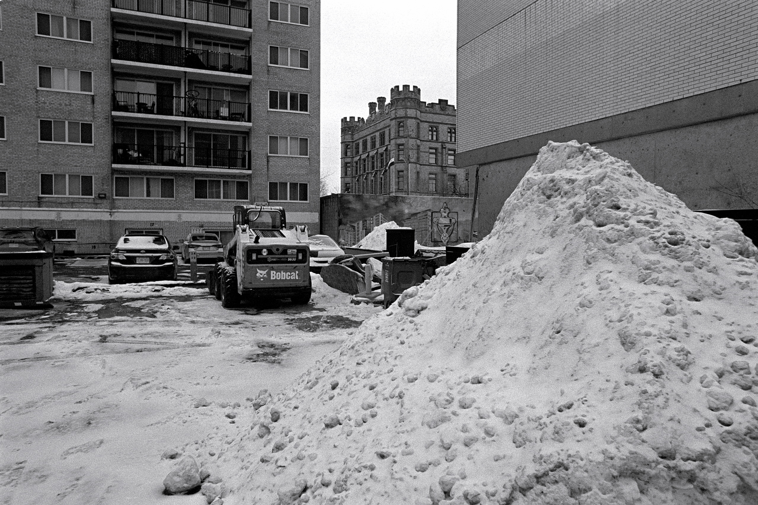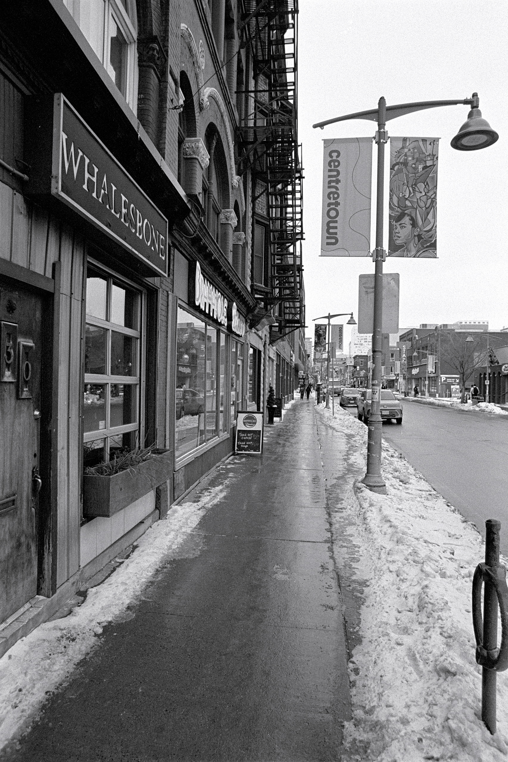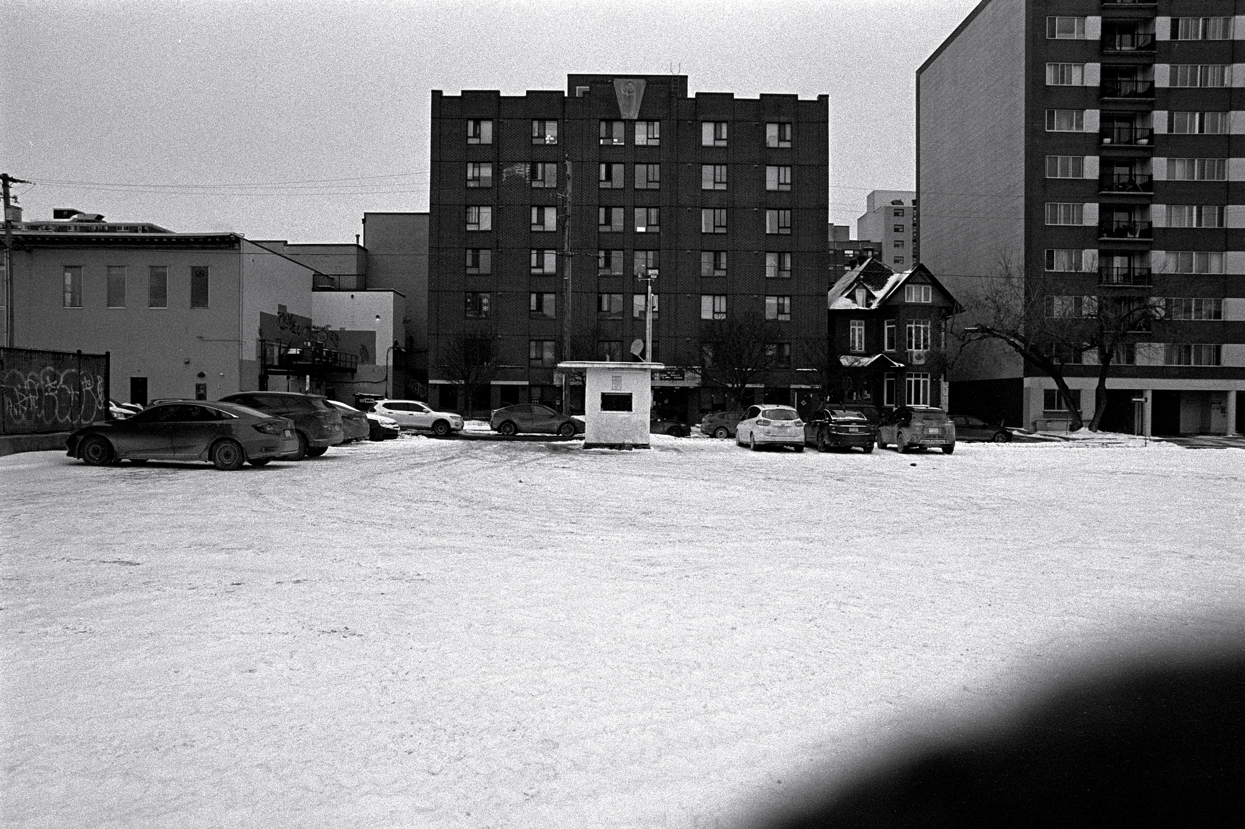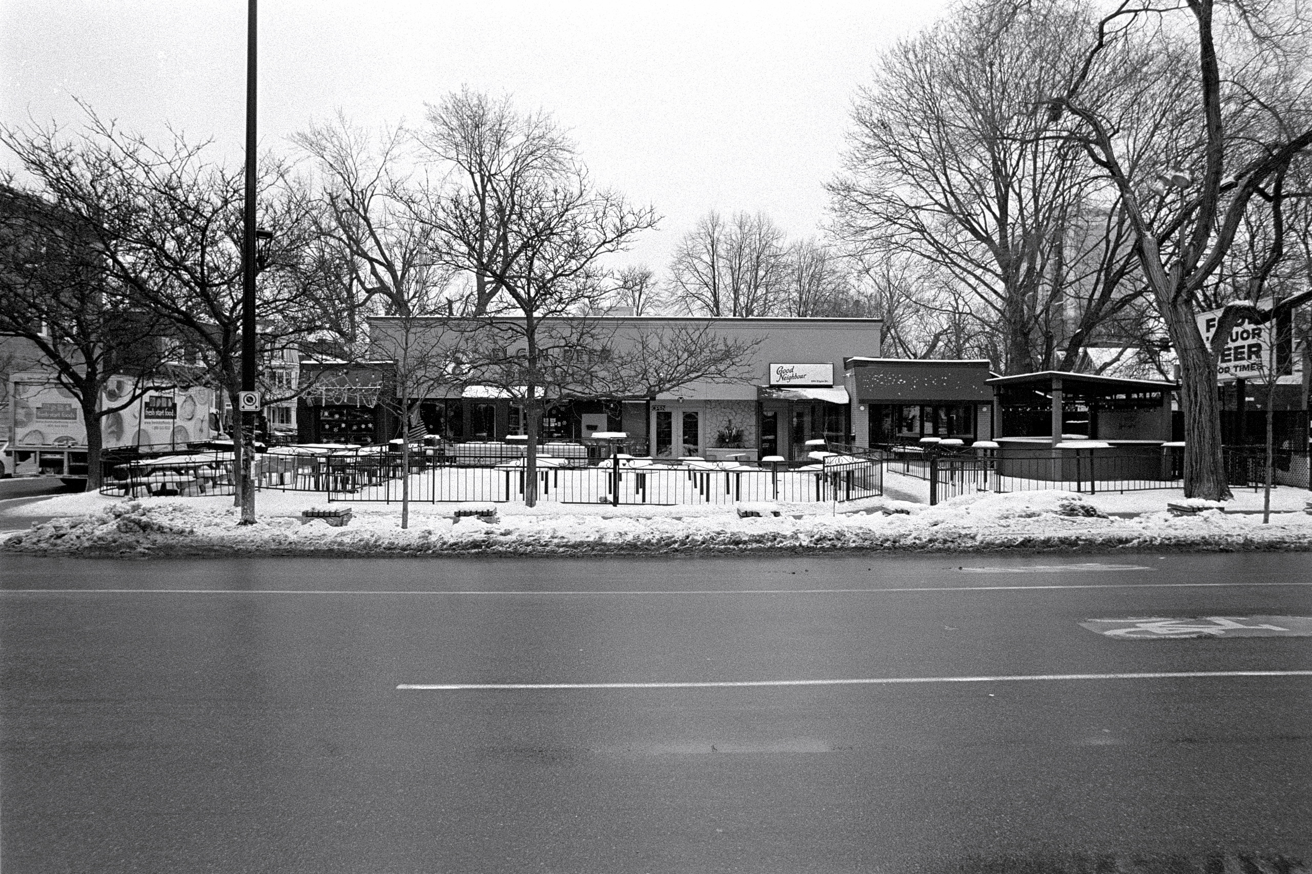 And I suppose that it was. In spite of the ongoing overcast and bitter cold, I loaded a roll of Tri-X to bring with me as Kathleen and I made our way around the neighbourhood to run a few errands ahead of New Years Day.
