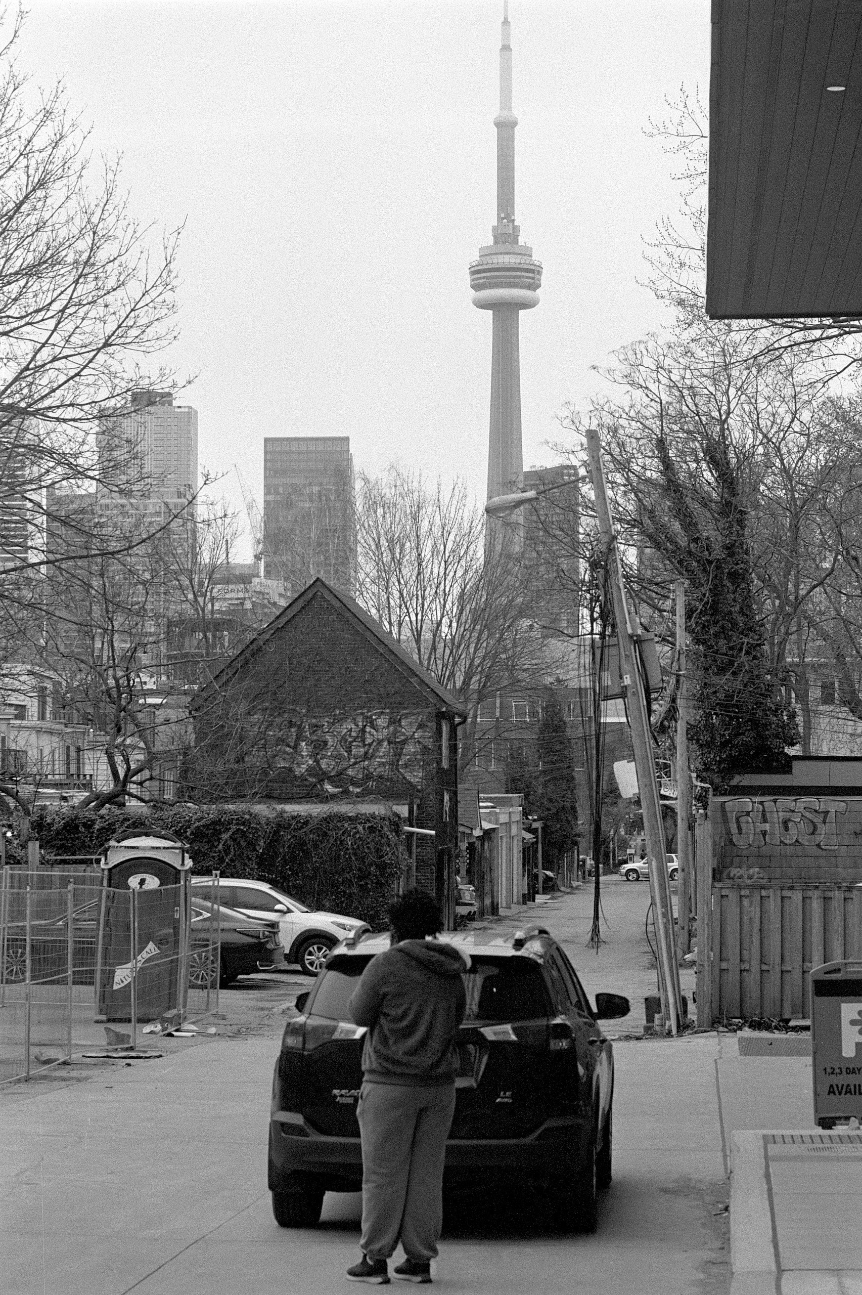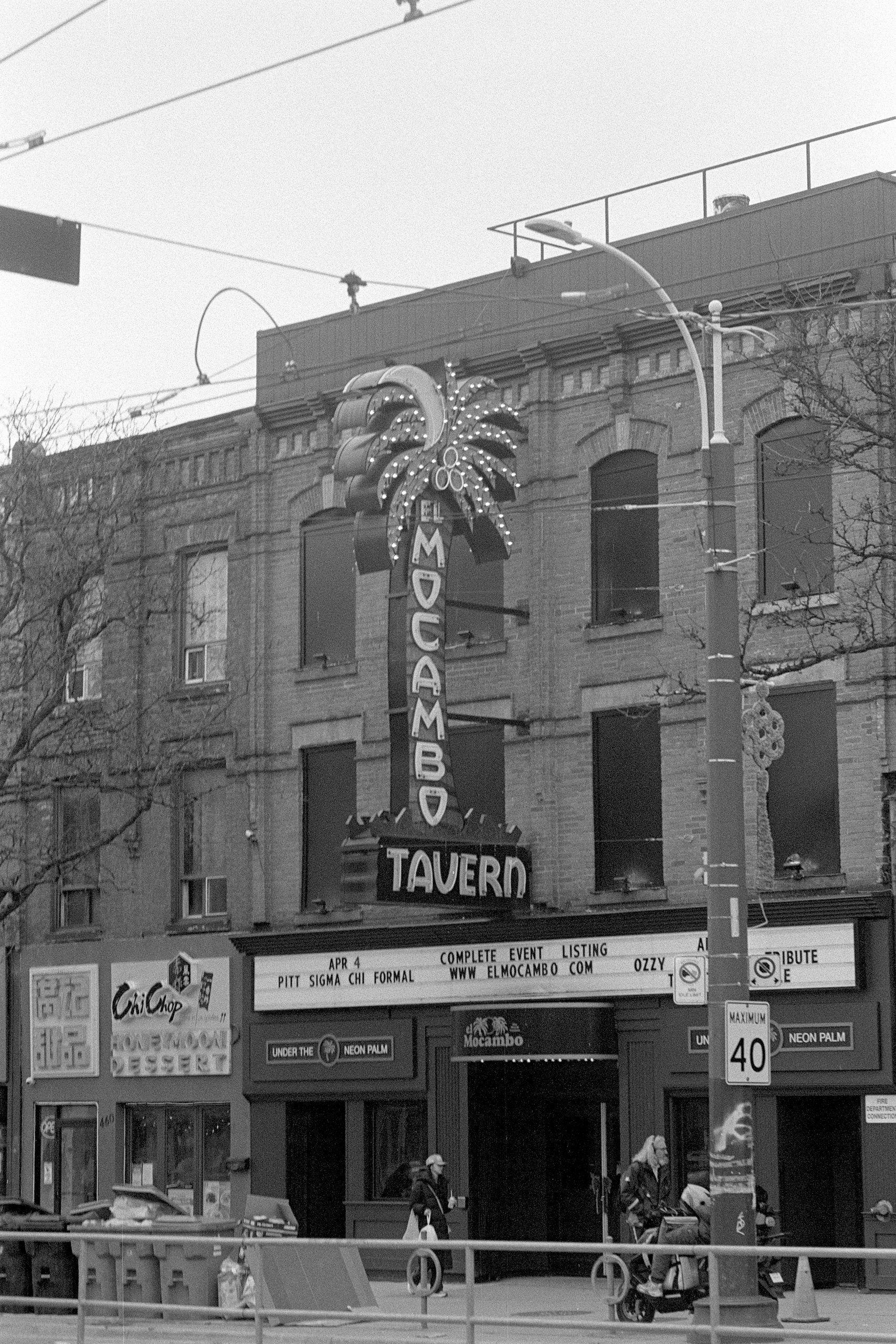 A quick refresher of the early-70s era Nikkormat’s functions, a roll of colour film, and I suggested that we do what I always do on the first day in Toronto: take a leisurely walk over to College and Bathurst for my favouritest of all vegan nachos!